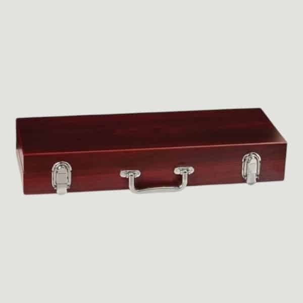 handle. The utensils are set in dark gray foam.