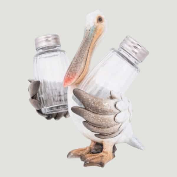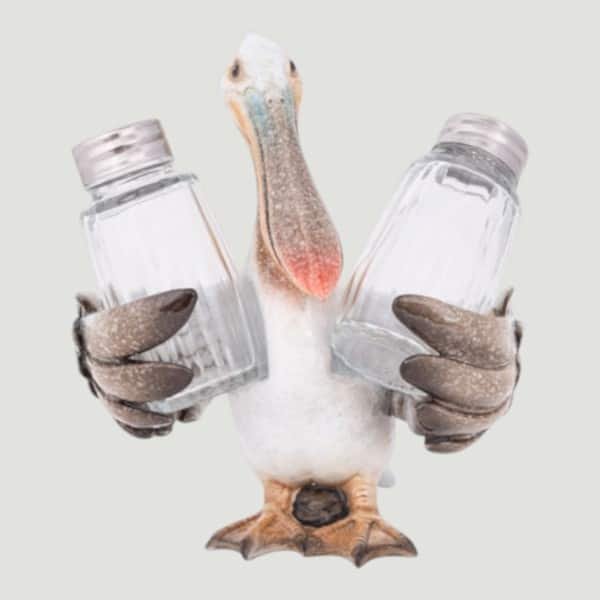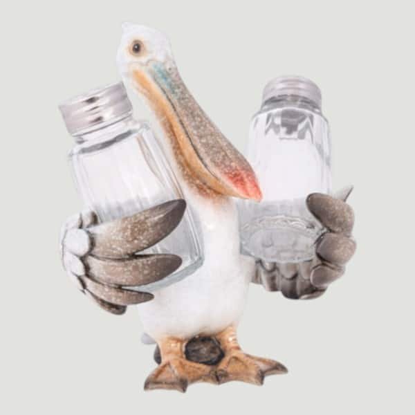 5″ High This Polystone White Pelican Holds Metal and Glass Salt and Pepper Shakers In His Wings – He’s Cute, He’s Useful, and He’s a Seaside Decoration Waiting and Hoping That It’s Going to Fish for Dinner That Needs His Seasoning