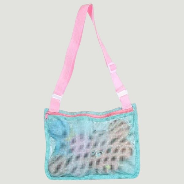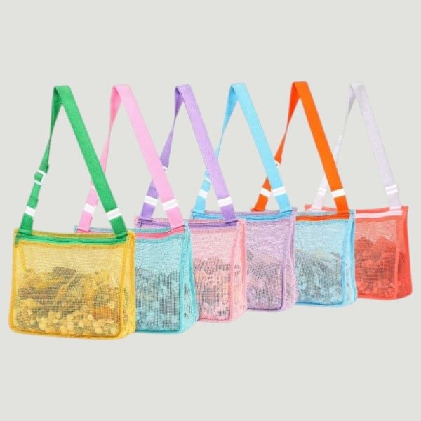 A breathable, quick-drying mesh bag designed for collecting seashells, shark teeth, and beach treasures. Durable, expandable, and easy to carry—perfect for kids and adults on any seaside adventure.