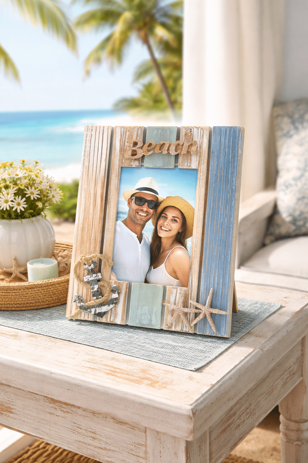- THE AQUARIUS BEACH FRAME COMES WITH A UNIQUE DESIGN YOU WILL LOVE – Decorated with starfish and boat anchor, the beach theme picture frame puts up your cherished summer photo with your loved ones. Preserve your best memories with the ocean picture frame or input your beach vacation memories and set up the Aquarius vacation photo frame as a refreshing beach office decor.