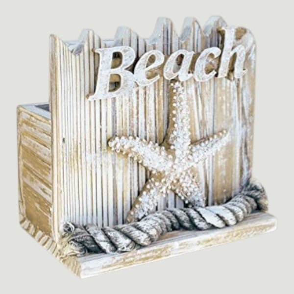 • INCLUDED WITH THE PURCHASE OF NAUTICAL COASTERS FOR DRINKS – Includes 1 Baja Beach Starfish Wooden Nautical Coaster set that comes with 4 square-shaped coasters with cup indentation and 1 Coaster Holder. The coaster holder features a starfish and nautical rope and it has a durable base. The Nautical coaster set makes an eye-catching display for home decoration and tables. Rustic nautical tea and coffee coaster measuring 4.25Lx3Wx4.6H inches.