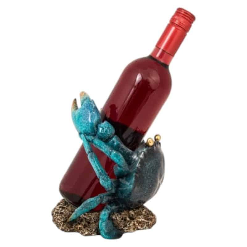 Wine Bottle Stand that’s Quite a Delicious Catch For Seafood Eaters and Wine Aficionados – Shiny Finish Polystone Blue Colored-Crab Holds a Bottle of Wine (Not Included) – Shown Here with and Without Bottle