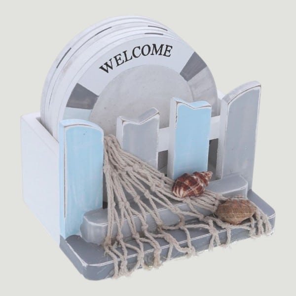 • INCLUDED IN THE PURCHASE OF NAUTICAL COASTER SET – Includes 1 CoTa Global Moonlight Nautical Wooden Coaster Set that comes with 6 coasters for drinks with Welcome on Board text and 1 Coaster Holder that features a fishnet with seashells design and a durable base. The wood coasters for drinks make an eye-catchy beach theme decor and coastal table decor for nautical home decoration. The cute coasters for drinks measure 4.25Lx3.15Wx4H inches.