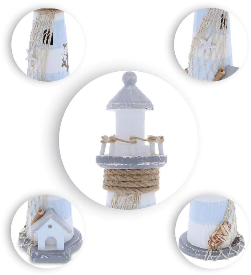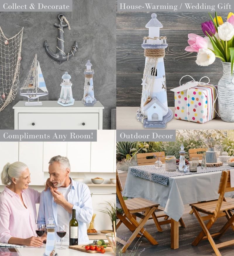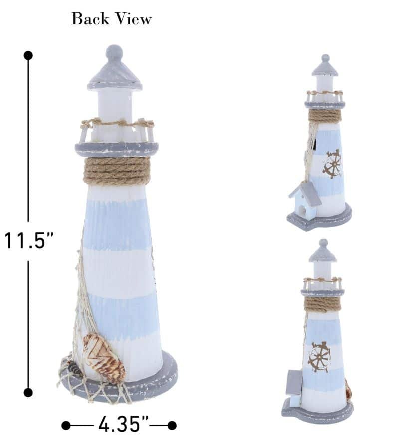 - HIGH-QUALITY LIGHTHOUSE TABLE TOP SCULPTURES HOME DECOR – Made of quality wood, the Lighthouse is a durable room decor ocean piece. Nautical decor lighthouses are classic ahoy decor that are never out of style. Display as ocean decor for bathroom, beach centerpieces for wedding, or as nautical decorations for home sea theme kitchen! Handmade nautical centerpiece figurine to give life to any room. Add a beach desk decor to your work space.
