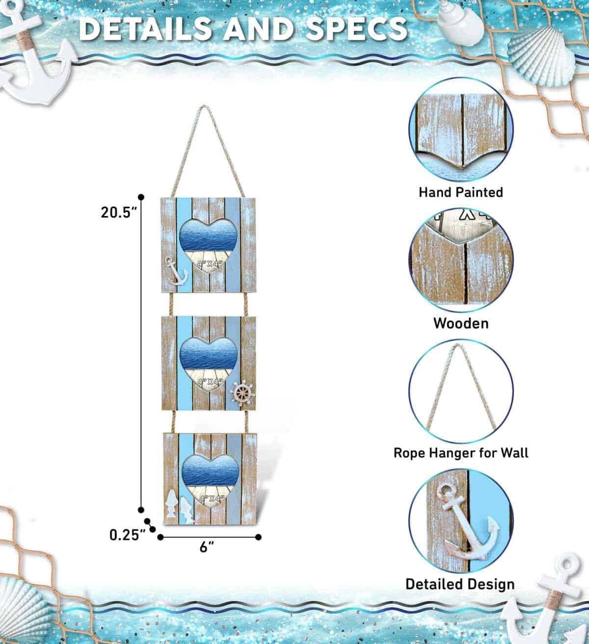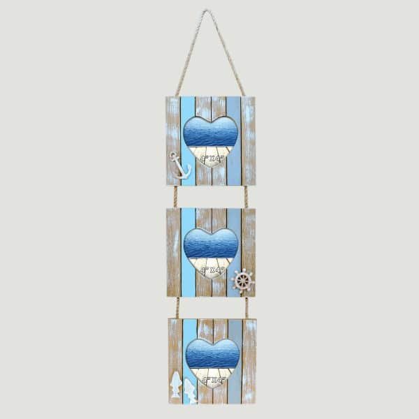 - THE TRIPLE NAUTICAL PHOTO WALL DECOR COMES WITH A UNIQUE DESIGN YOU WILL LOVE – Give your home a stylish relax beach house look with the Heart Shape Triple Photo Frame wall decor. The modern nautical wooden accents sea inspired spaces wonderfully. Attractive handmade nautical wall decor gift for friends who love the breezy feel of the seaside. Create a cozy by-the-beach interior with the hanging coastal wall decor or display as nautical tabletop.