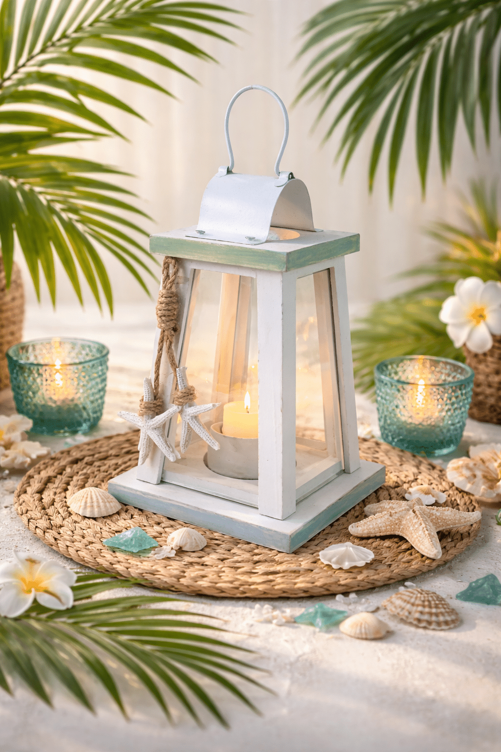 - THE OCEAN BREEZE OUTDOOR LANTERN DECOR COMES WITH A UNIQUE DESIGN YOU LOVE – Feel the ocean breeze in your home, outdoor patio, or garden with our beach-themed home decor lantern! With its sea ropes and hanging starfish, painted in a beautiful white and green pastel, the Ocean wooden lantern centerpiece for indoor and outdoor fits mantles, table tops, or a coastal shelf decor. Light the white and blue lantern decor for a relaxing vibe.