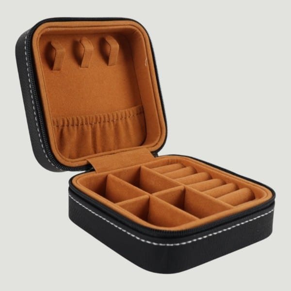 The interior is thoughtfully designed with dedicated compartments for rings, earrings, chains, and more, ensuring your favorite pieces stay tangle-free and protected. The sleek leatherette exterior offers the look and feel of genuine leather, with the added durability and ease of care that comes from synthetic craftsmanship. Customize it your way laser engrave the top, bottom, or both sides for a personal touch. Perfect for bridesmaid gifts, promotional giveaways, or customized travel accessories that make your brand or celebration truly unforgettable.