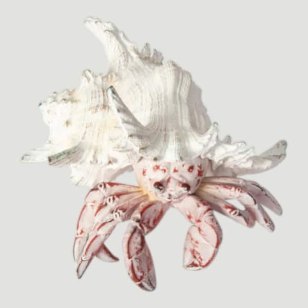 White Sea Shell is Home to a Red Hermit Crab and It’s a Decorative Figurine with Amazing Detail.